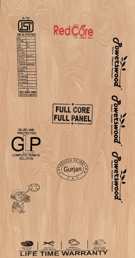 Red Core – Full Core BWP Gurjan plywood is manufactured using 100% hardwood red core (Eucalyptus), known for its superior strength and durability. The full core construction ensures uniform load distribution, excellent screw-holding capacity, and long-lasting performance.